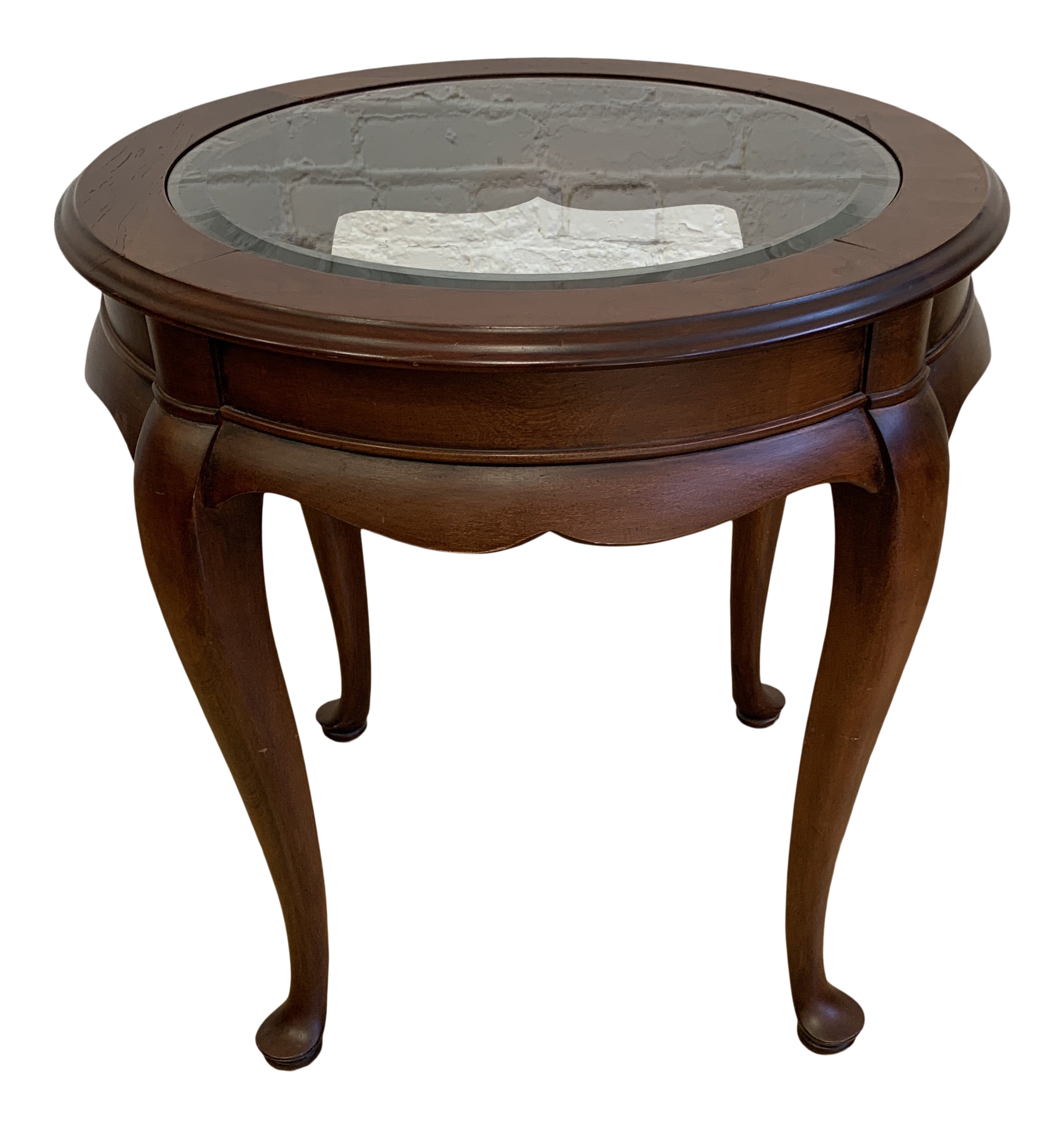 Two Shelves Frenchi Furniture Wood Round Side Accent Table Inset Glass